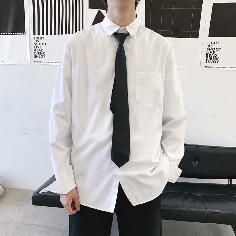 Tide brand white shirt spring and autumn casual men's Japanese simple inner shirt long-sleeved Korean version loose college style class uniform