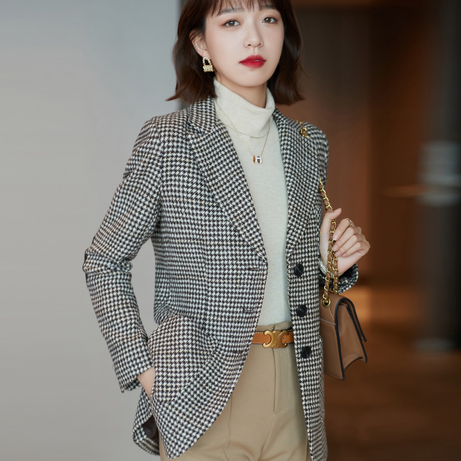 High-quality woolen fabric, soft and delicate tentacles ~ 2022 autumn and winter high-end commuter houndstooth suit women's clothing