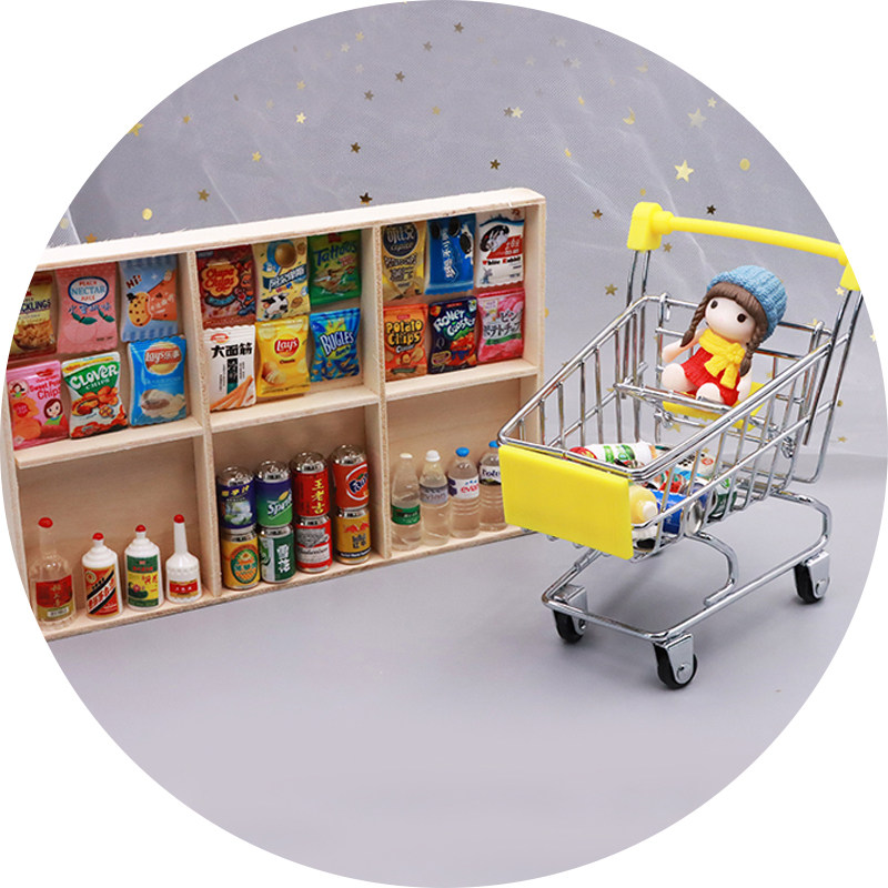 Mini food play house toy doll house supermarket simulation spicy chips potato chips canned mineral water drink decoration
