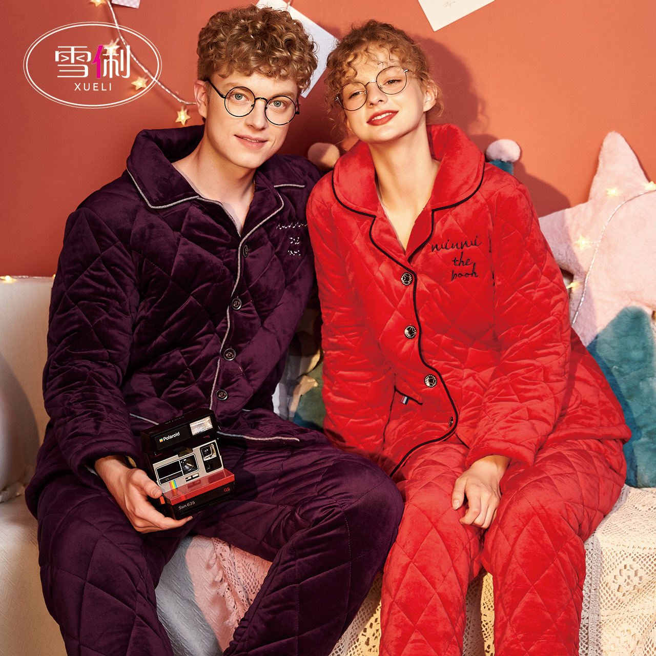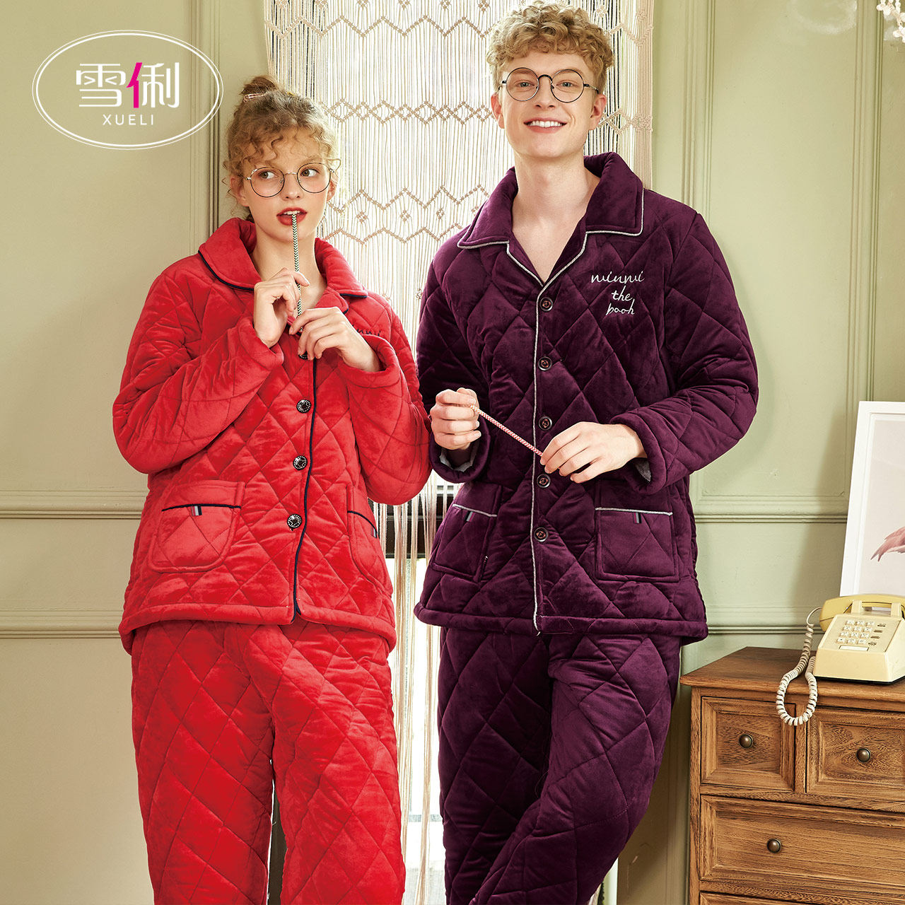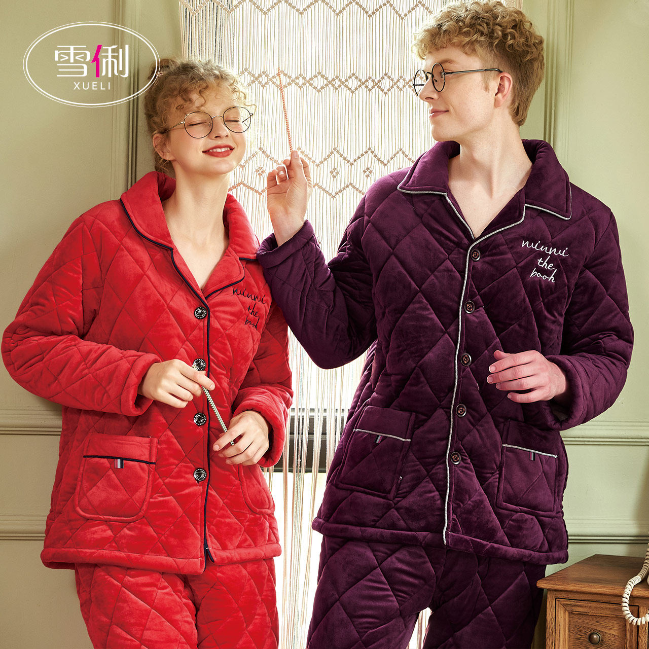 Snow clipped couple pajamas fall winter women's red thickened plus pile coral velvet men's wedding set
