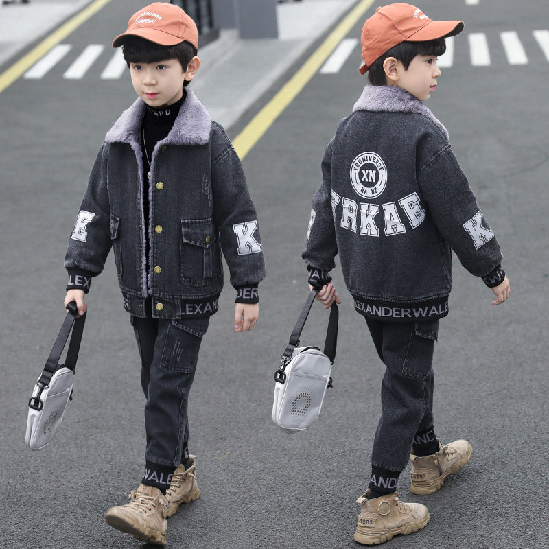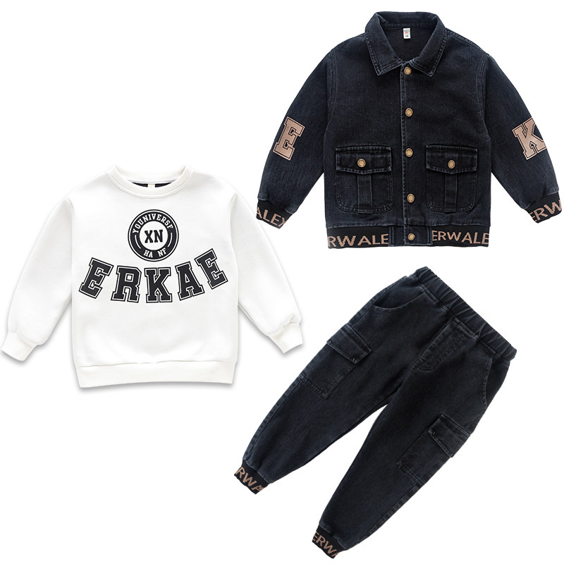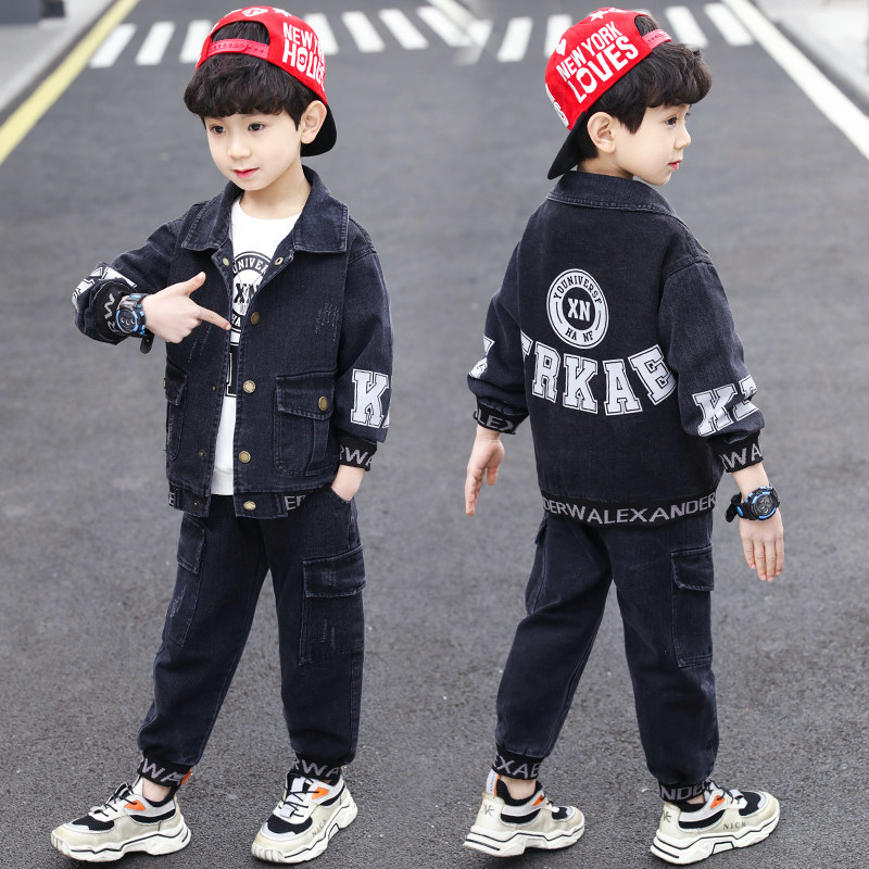Boys' autumn clothes 2022 new suits children's spring and autumn sports Western style three-piece suits big children's plus velvet children's clothes