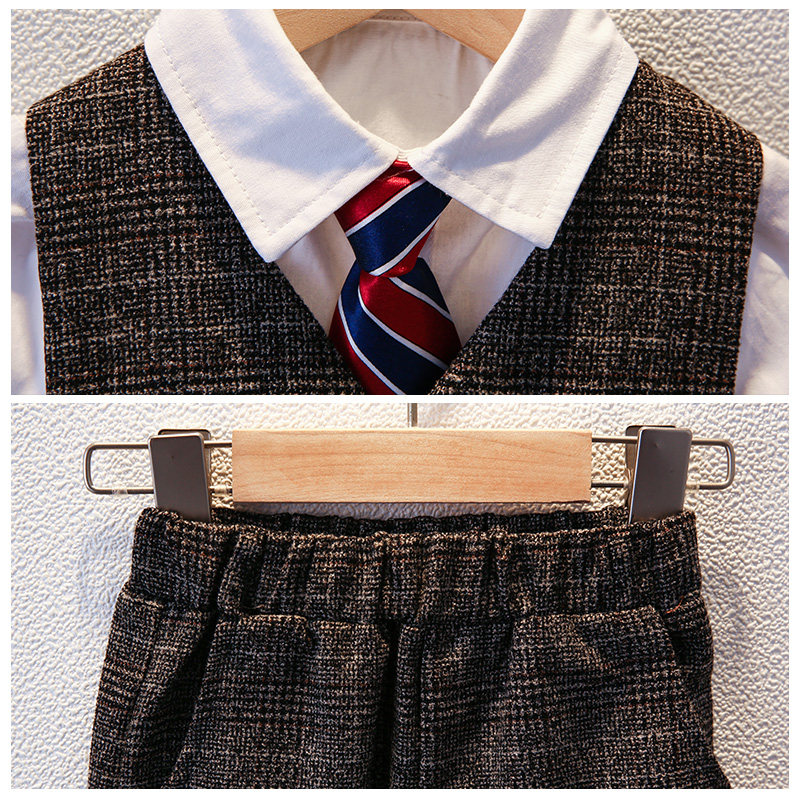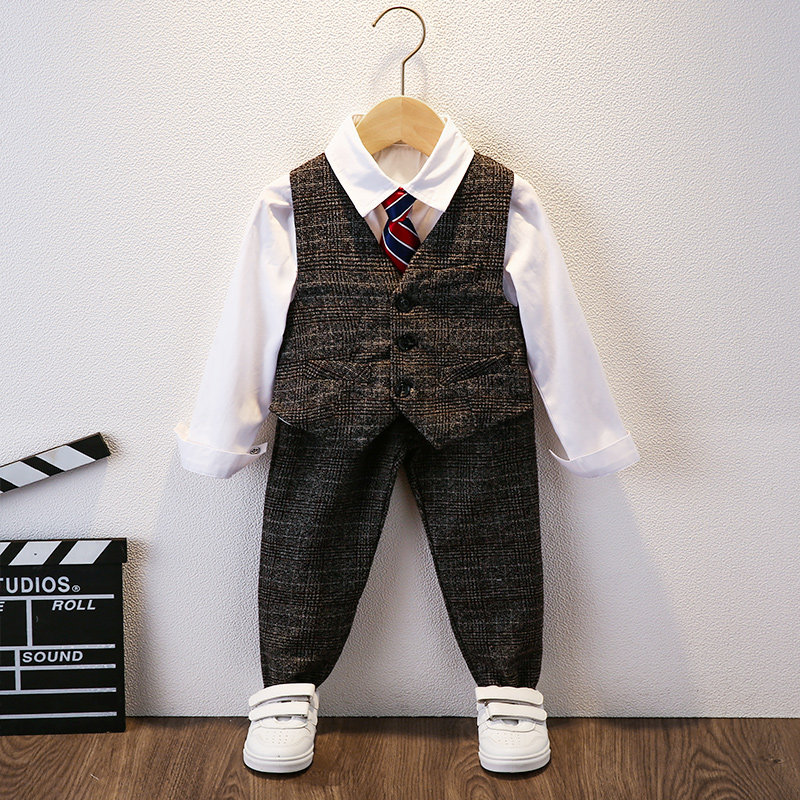 Boy suit spring and autumn children's flower child dress host piano performance clothes handsome English wind suit