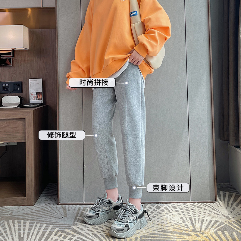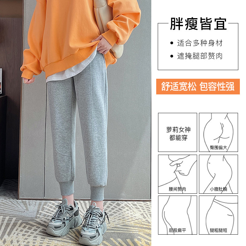 Grey sports pants female spring autumn small sub loose bunches high waist casual pants pure cotton 2021 new fashion pants