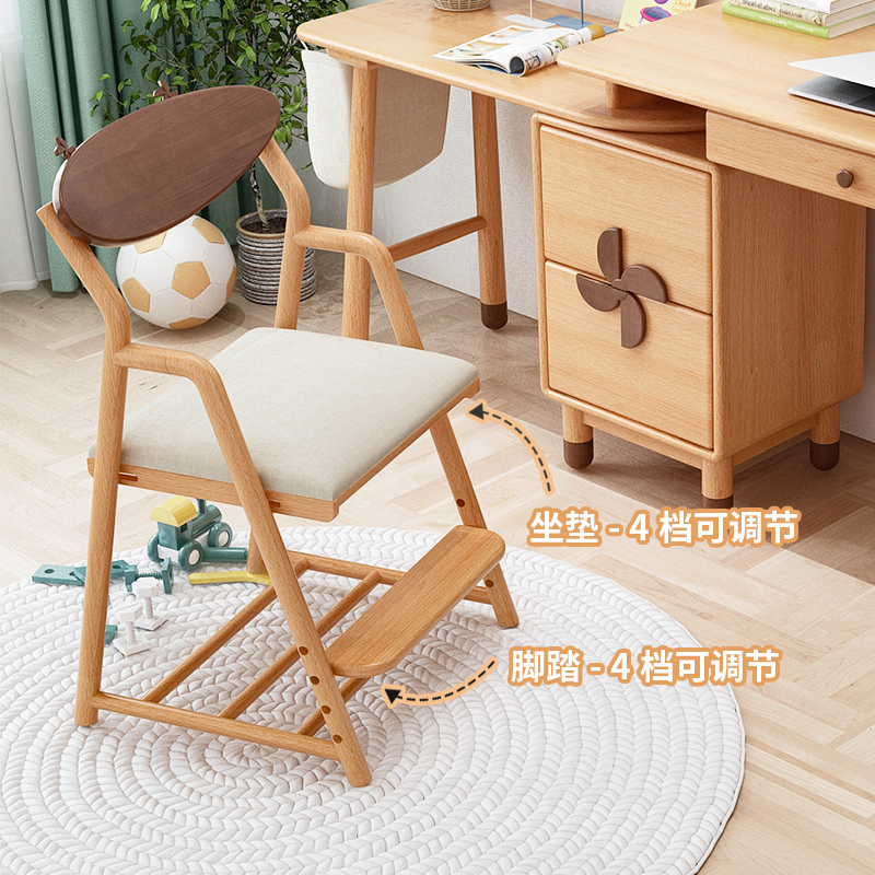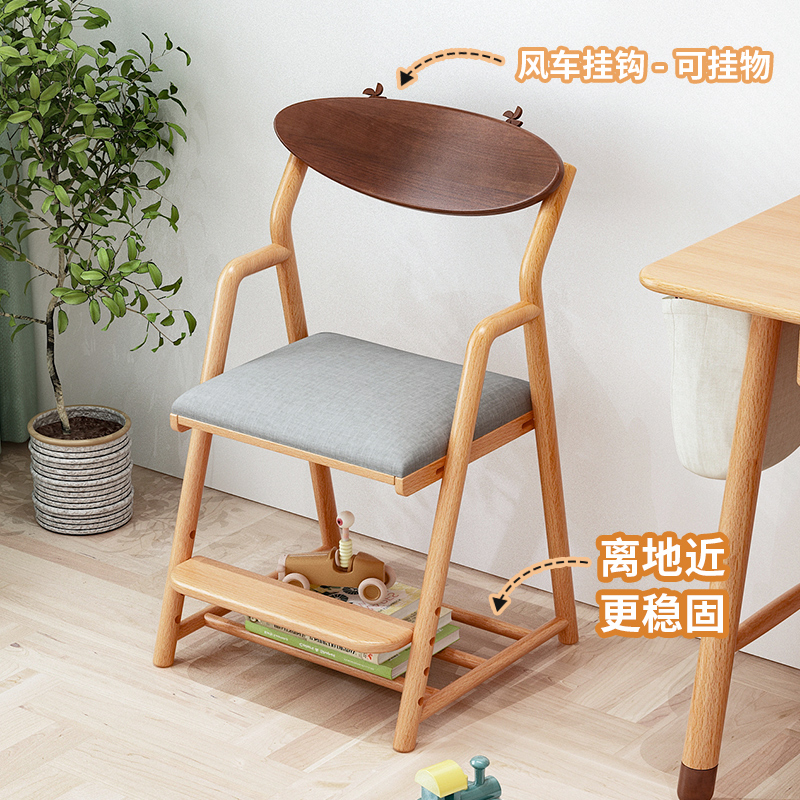 Children's study chair all solid wood with backrest can be lifted and adjusted student beech office chair correction sitting posture set