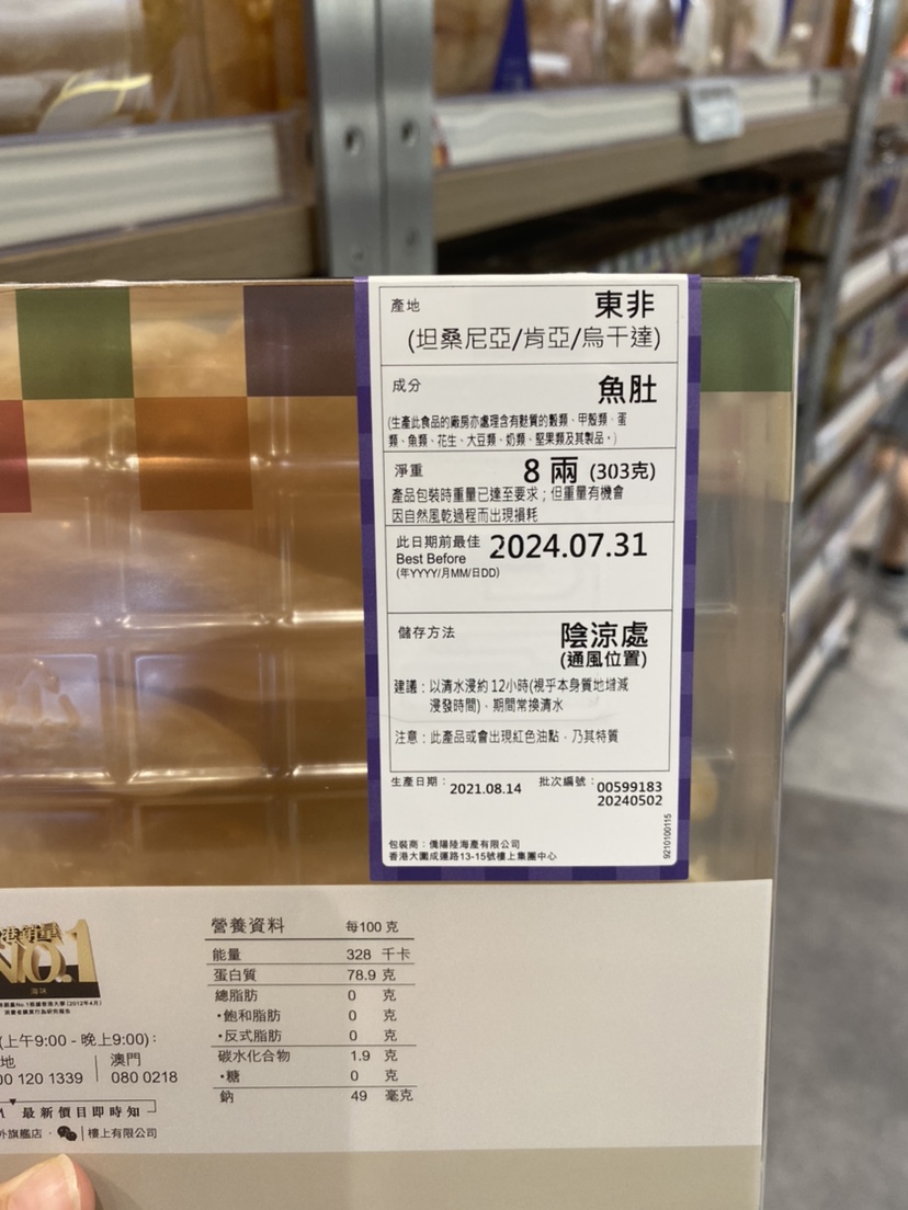 Hong Kong Upstairs East Africa's special selection of fish floats in fish maw tubes 8 pairs 303G gift box 10-14 large fish maw maws