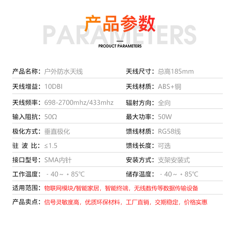 GSM 3G 4G 5G 5G frame wall fixed antenna 433M cabinet rubber stick antenna 5G outdoor waterproof antenna