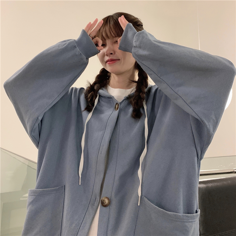 Maternity wear autumn large size women's hooded mid-length cardigan coat sweater women's Korean style fashion loose top trendy