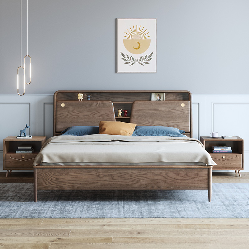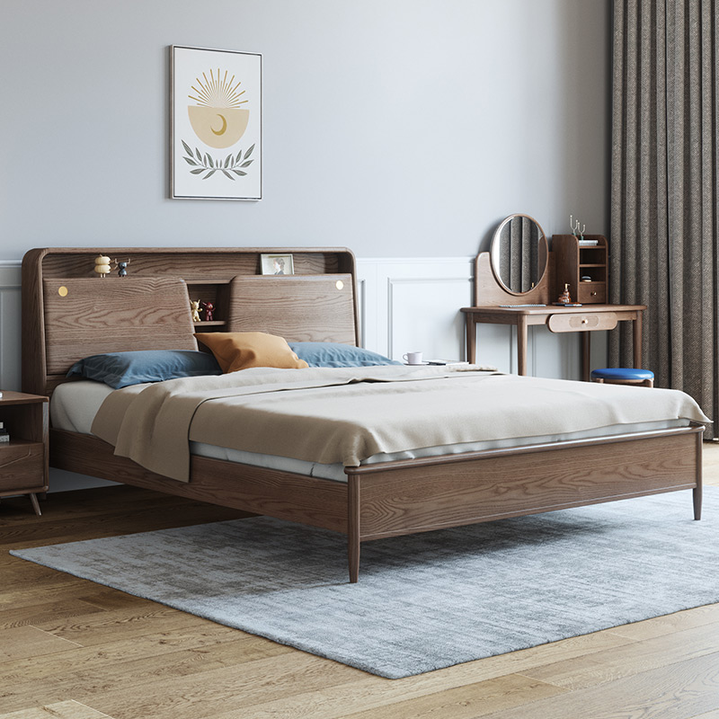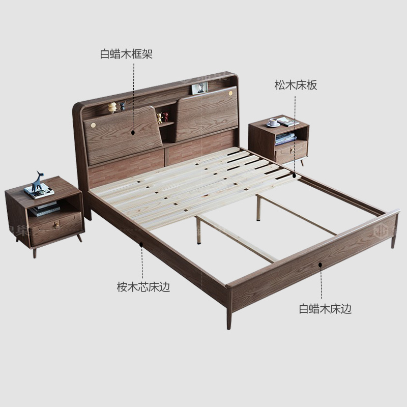 Ash wood solid wood bed master bedroom double bed 18 meters modern minimalist 15 with bookshelf storage small apartment marriage bed