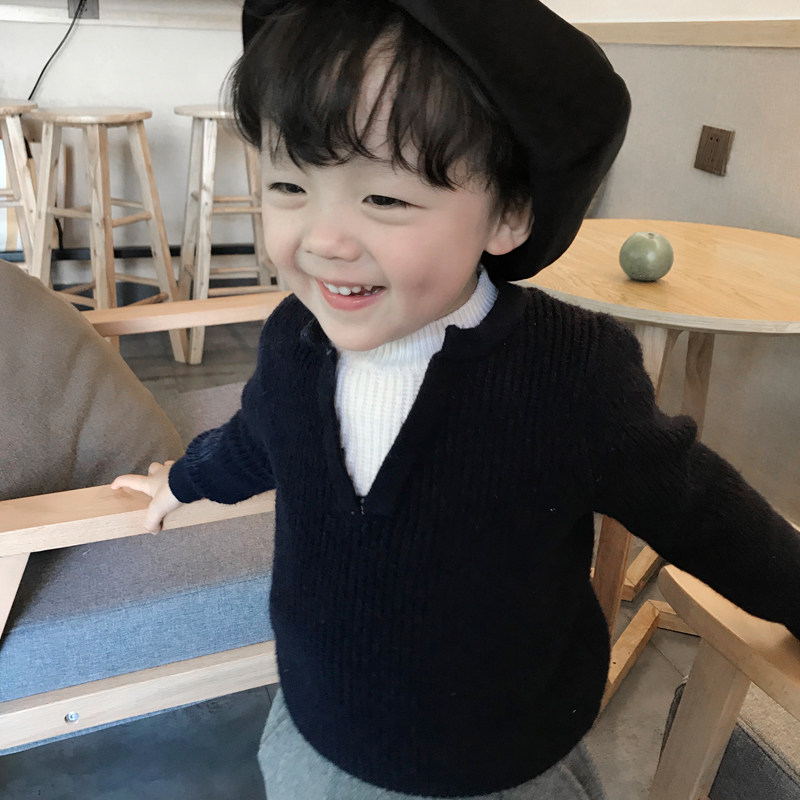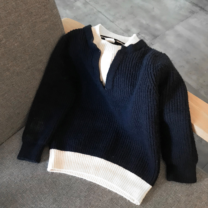 22 autumn new children's thin sweater knitwear original design Korean boys fake two-piece round neck long-sleeved jacket