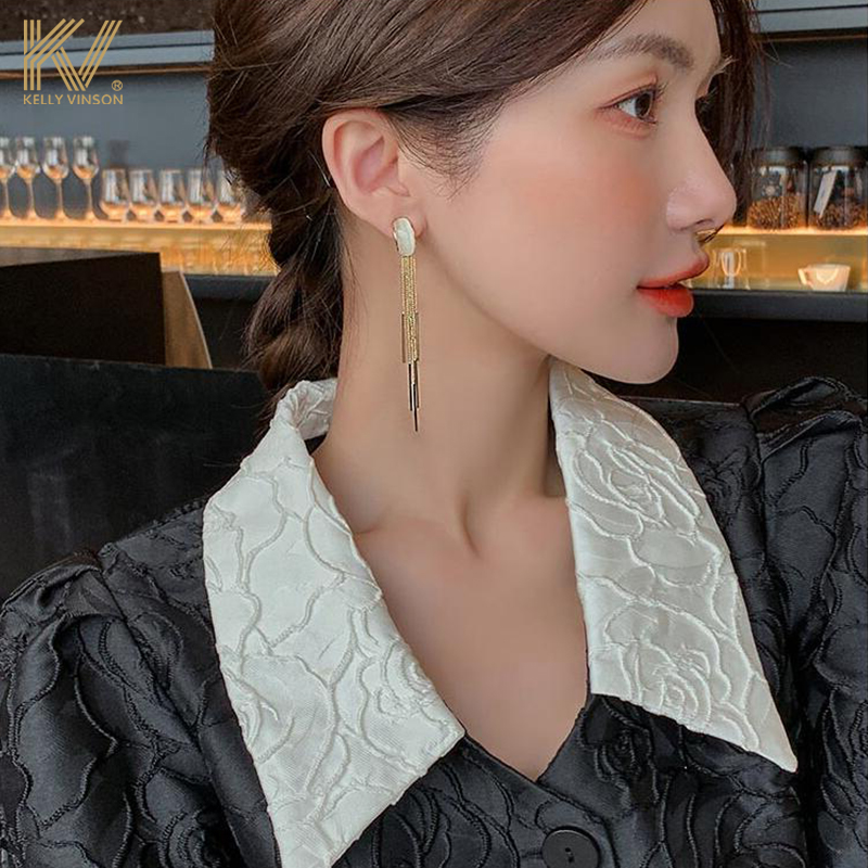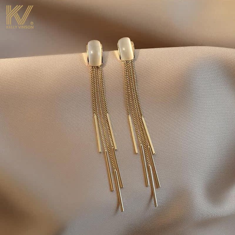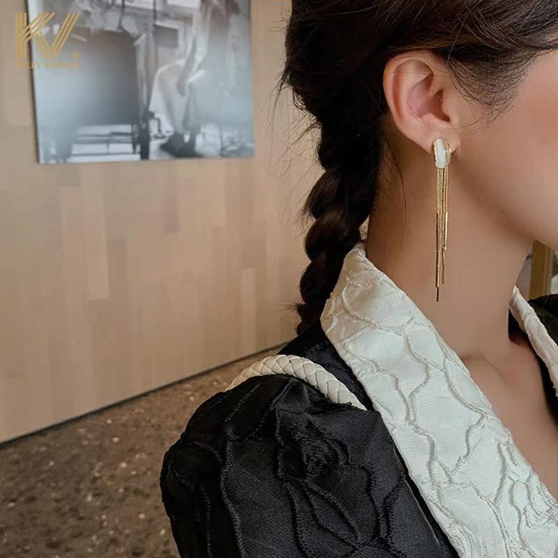 Cat Eye Stone Earl Decorated Pure Silver Needle Zircon Fairy Air Ear Needle Retro Superior Sensual Long version Temperament Su Gold Earrings Lady