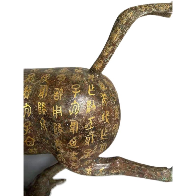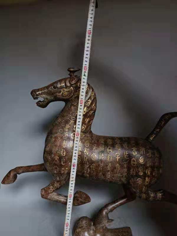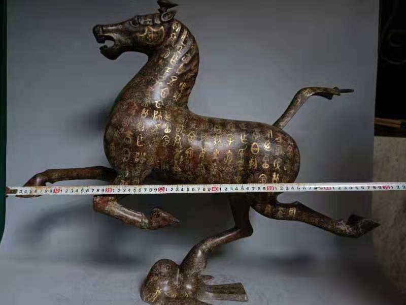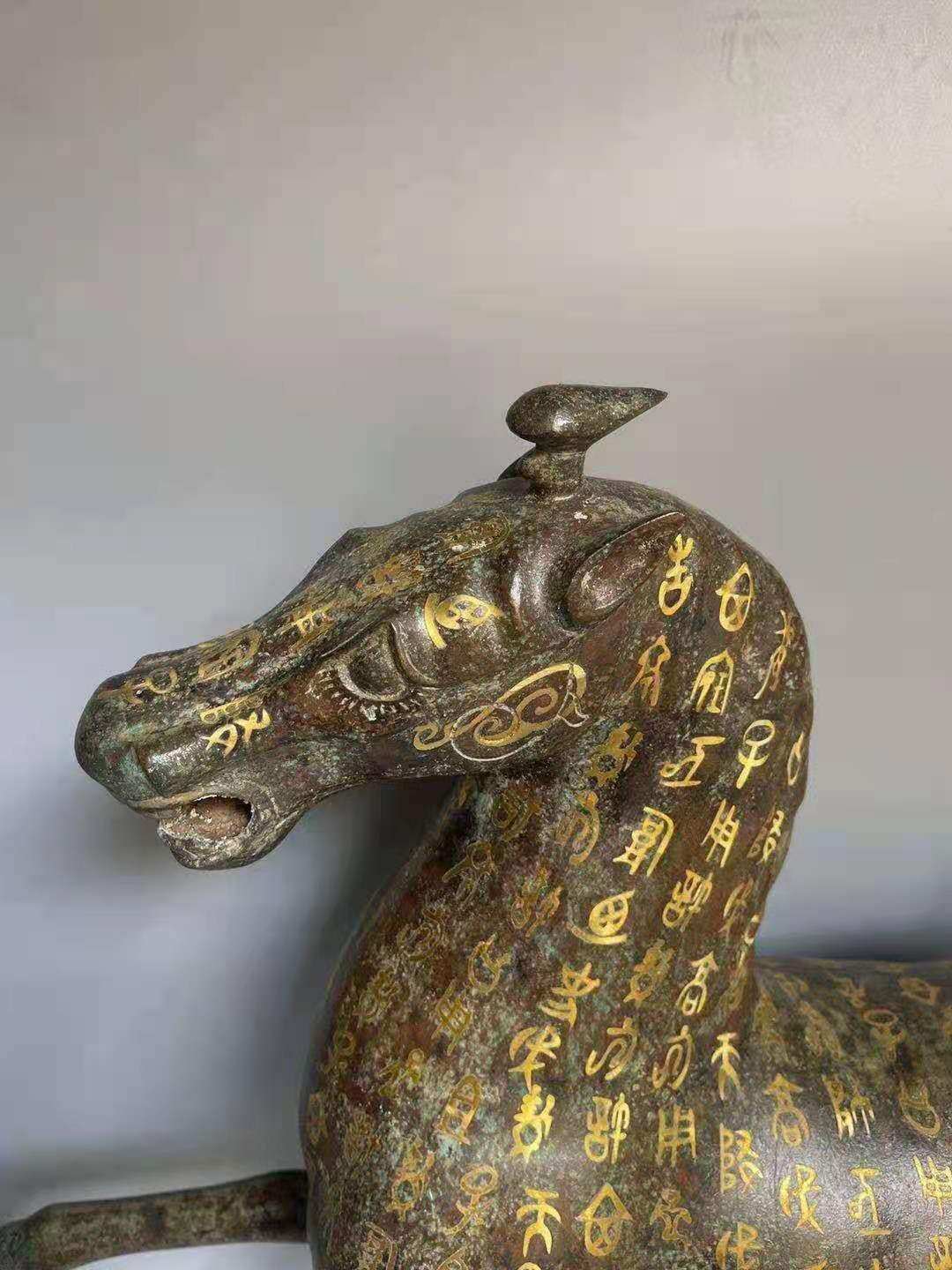 Imitation antique bronze ware with gold inscription and horse treeking with an antique red-spotted green-embroidered collection