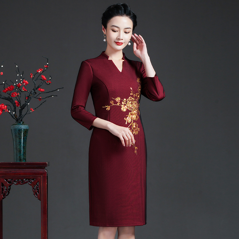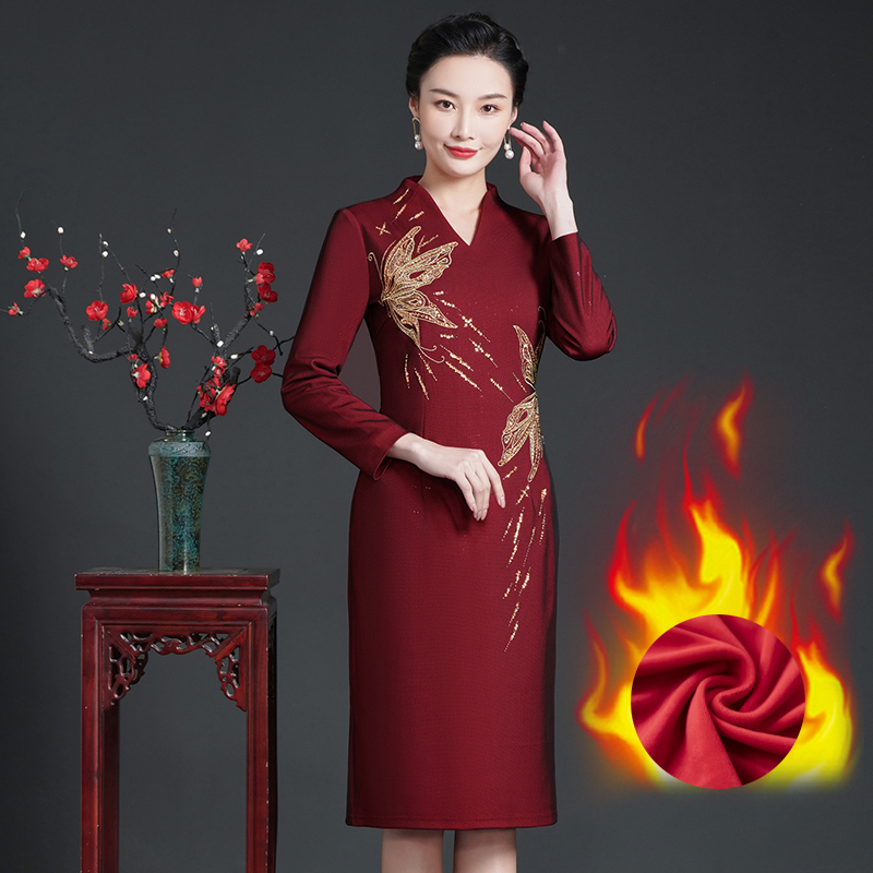 2022 Spring and autumn new gush thickened Mom dress wedding banquet Festive Qipao Dress Improved Big Size Dress Dress women