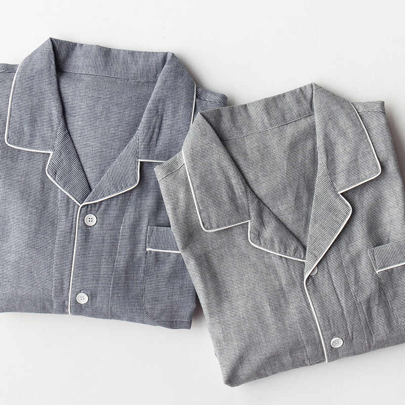 Men's Thin Long Sleeves Pyjamas Women's Summer Spring Autumn Pure Cotton Double Layer Gauze All-cotton Casual Home Wear Lovers Suit