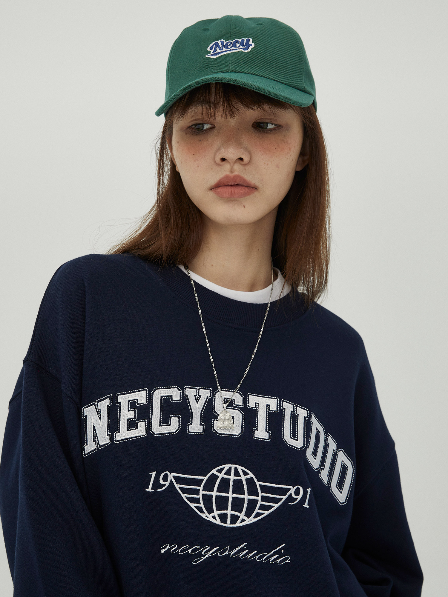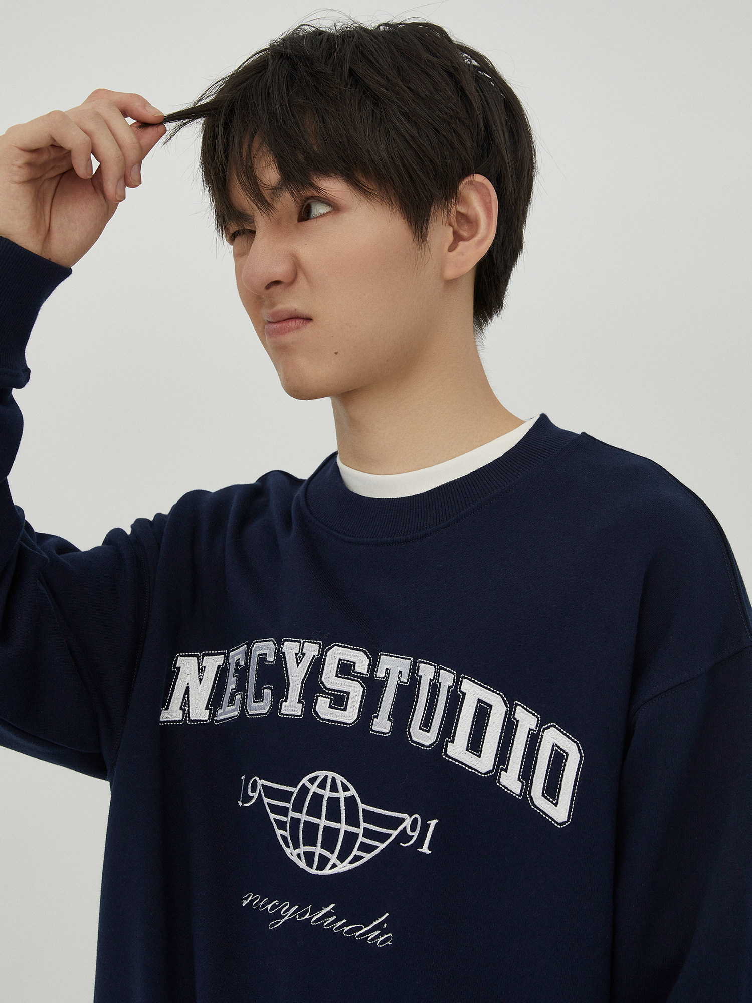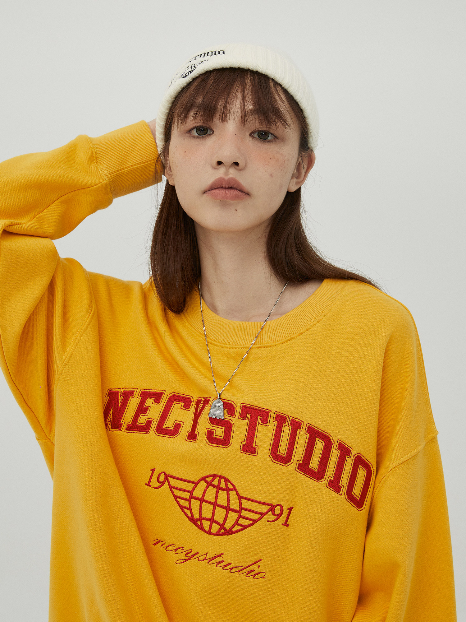 NECY two-color campus style 1991 letter embroidery sleeve round neck thick cotton T female trend street hip-hop retro long sleeves