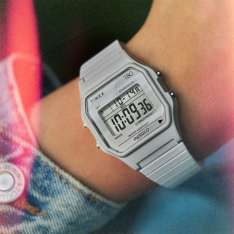 TIMEX Small square electronic watch retro - trend leisure students multi - functional T80 steel belt male watch