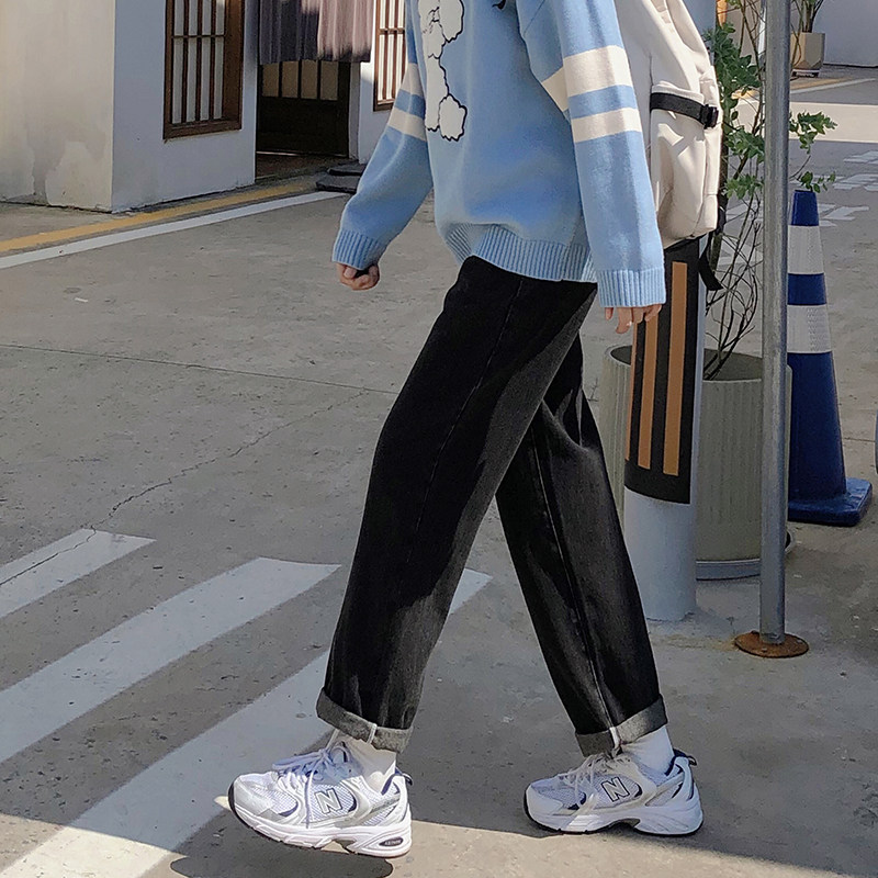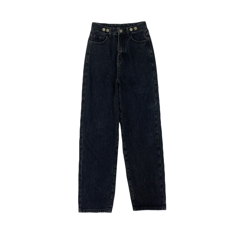 (Spot y) Loyal Dog Small Eight Pear-Shaped Homemade - Lulu is thin, dark, loose, all-match denim straight-leg pants in autumn