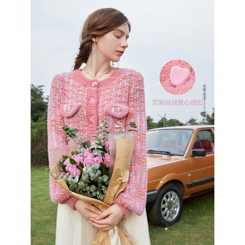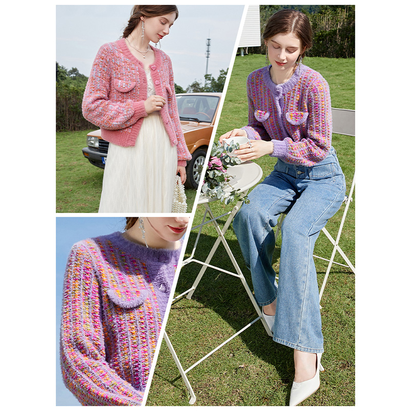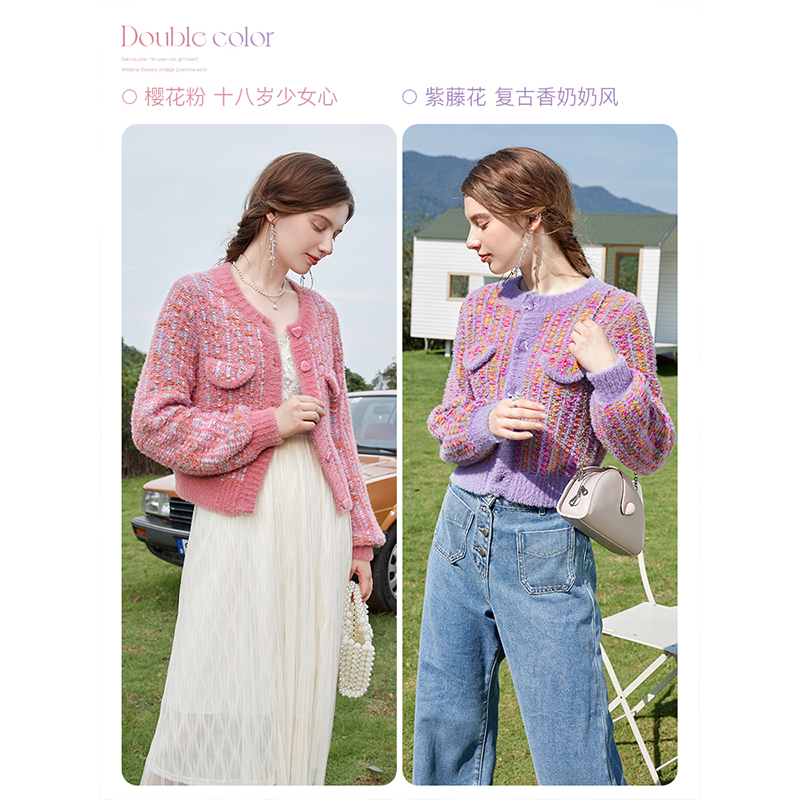 Triple Color 2022 Early Spring New Loose Short small Fragrant Wind Knit Cardiovert Jacket Temperament Lady Sweater Blouse