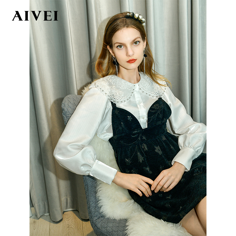 AIVEI Hingga Ai Wei 2022 Spring New Products High Waist Harness Wrap of Flocking Jacquard Ocean Dress N0660066