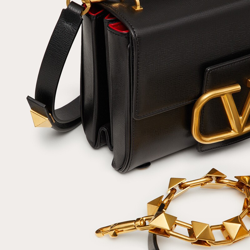 VALENTINO VALENTINO Stud Sign grained calfskin shoulder backpack