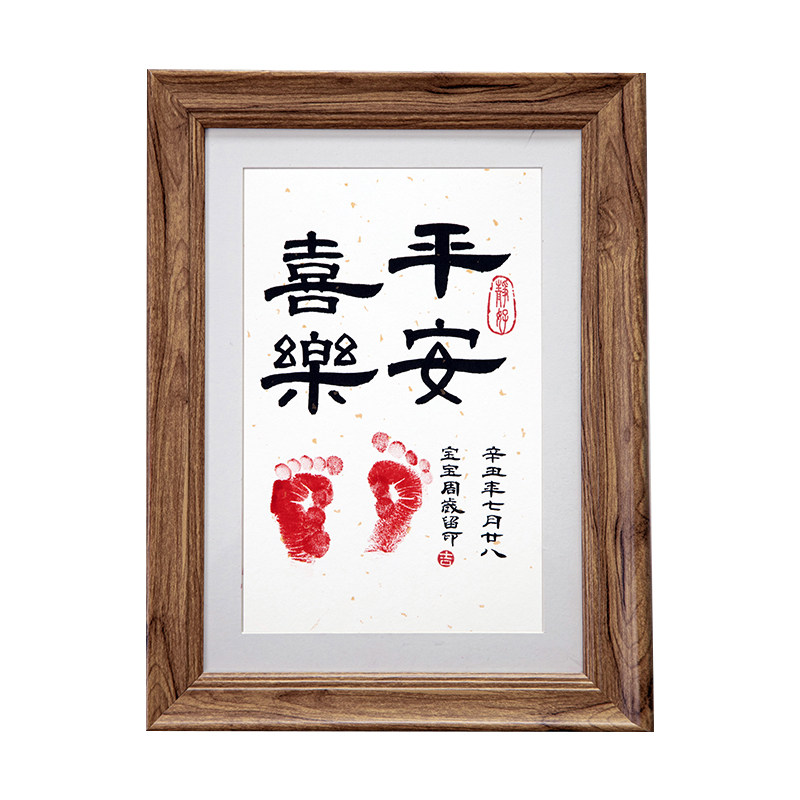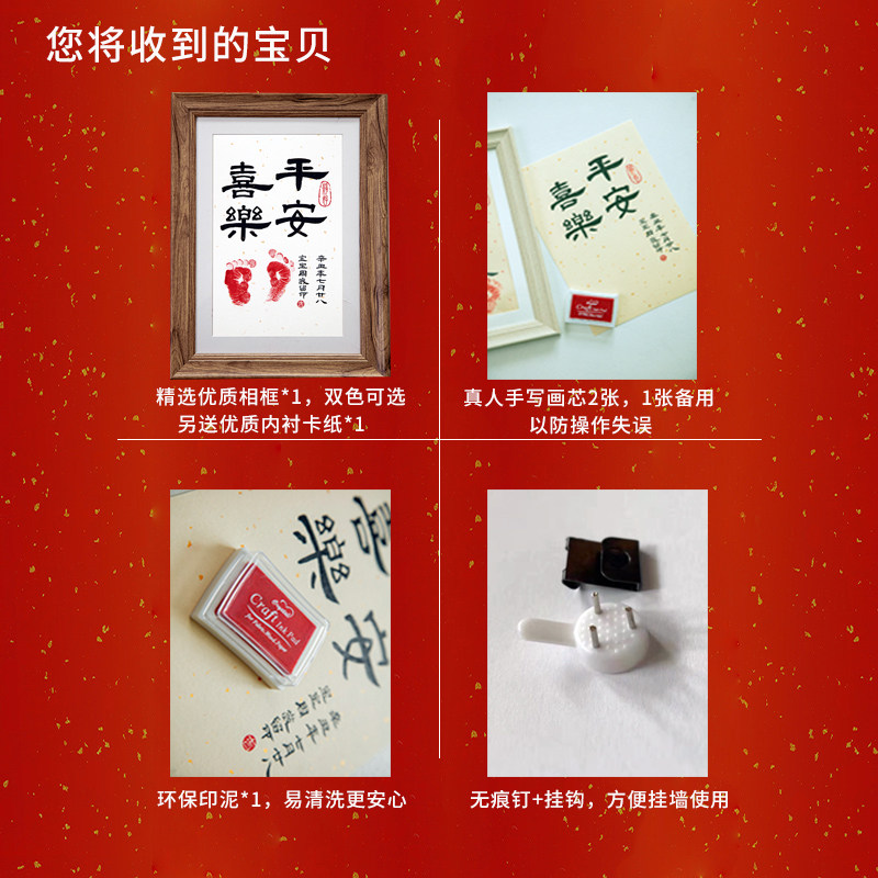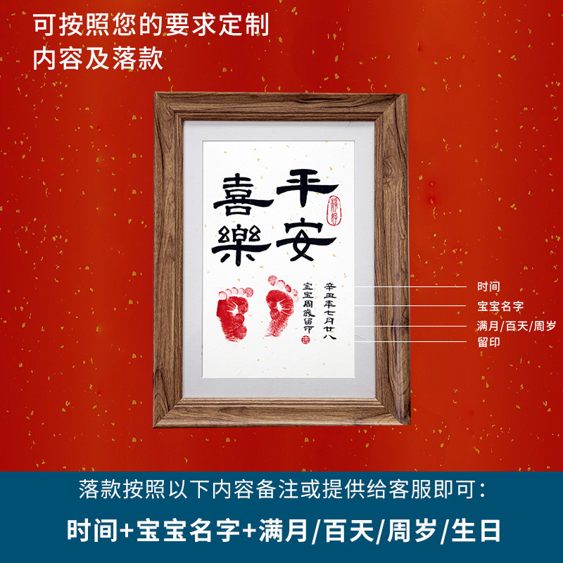 Baby Hand and Footprint Mud Souvenir Photo Frame Contentment Changle Calligraphy and Painting Newborn Baby Hand and Footprint Centennial Full Moon Gift