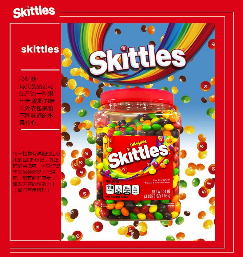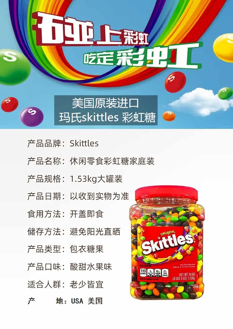 Imported from the United States Skittles rainbow jelly beans children's candy ready-to-eat snacks fruit-flavored candy 1 53kg