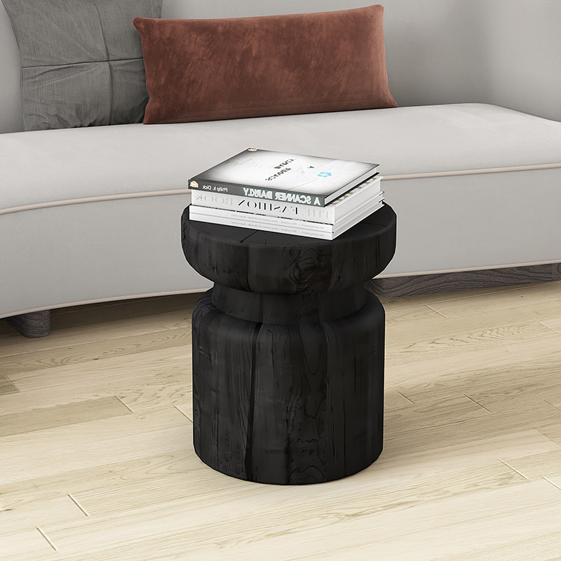 Nordic square carbonized wooden pier retro wood pile flower stand carbonized log bench solid wood TV cabinet shoe changing stool