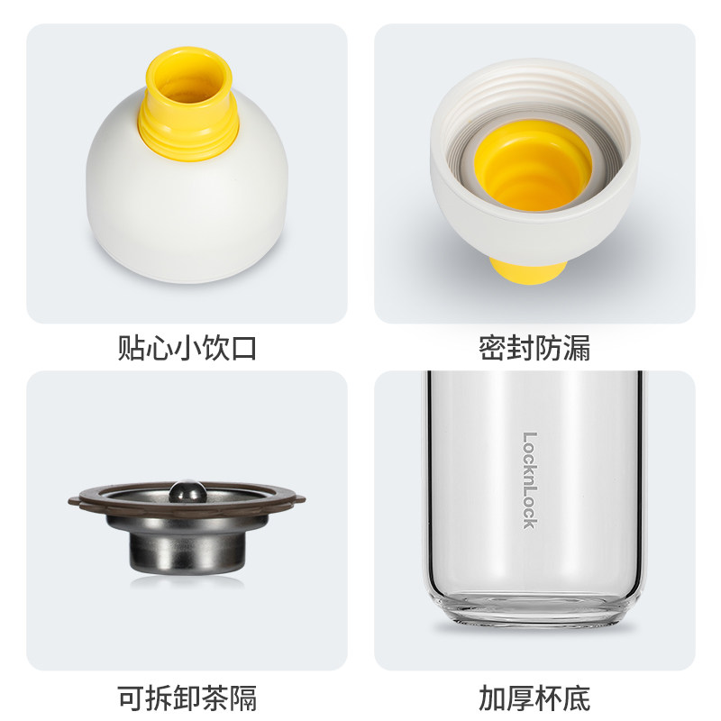 Lock and lock glass water cup female portable simple high-value ins wind student large-capacity high temperature water cup male