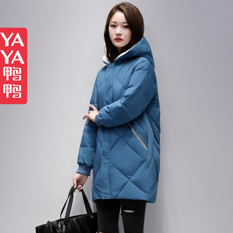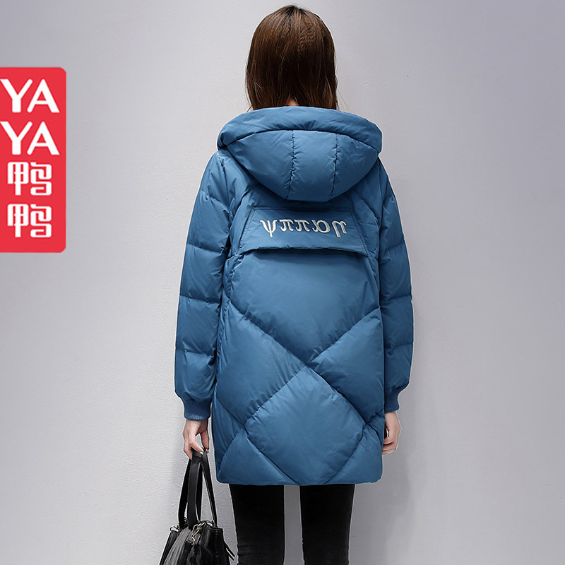 Duck Duck Black Down Feather 2022 new winter dress middle - long - range hood warming suit high - end
