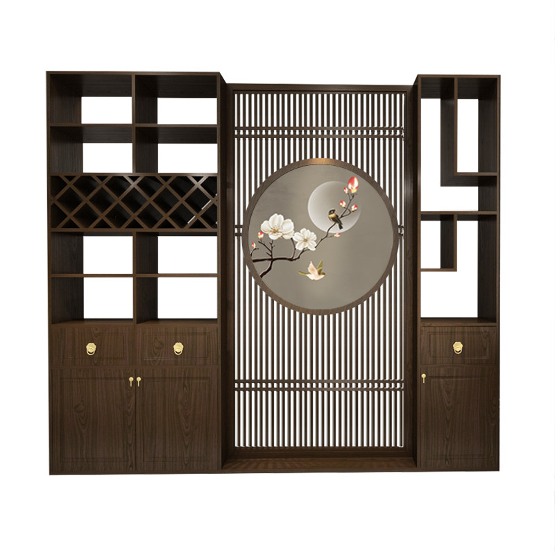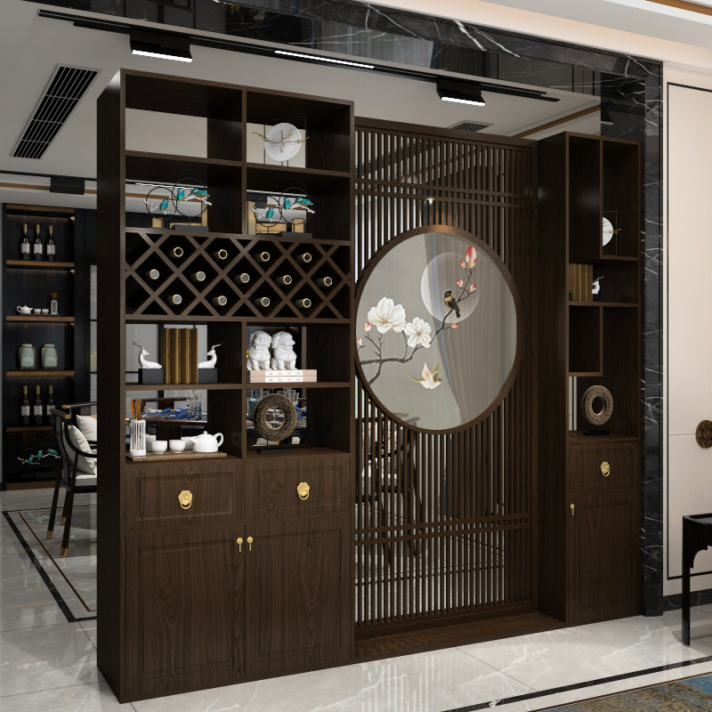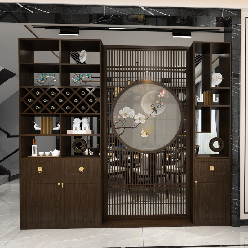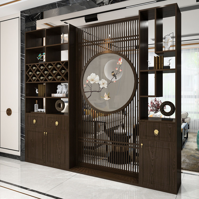 Embroidery New Chinese Screen Xuanguan Cabinet Entrance Door Solid Wood Living Room Modern Partition Broken Door Hall Dining Room Wine Cabinet Integrated Cabinet