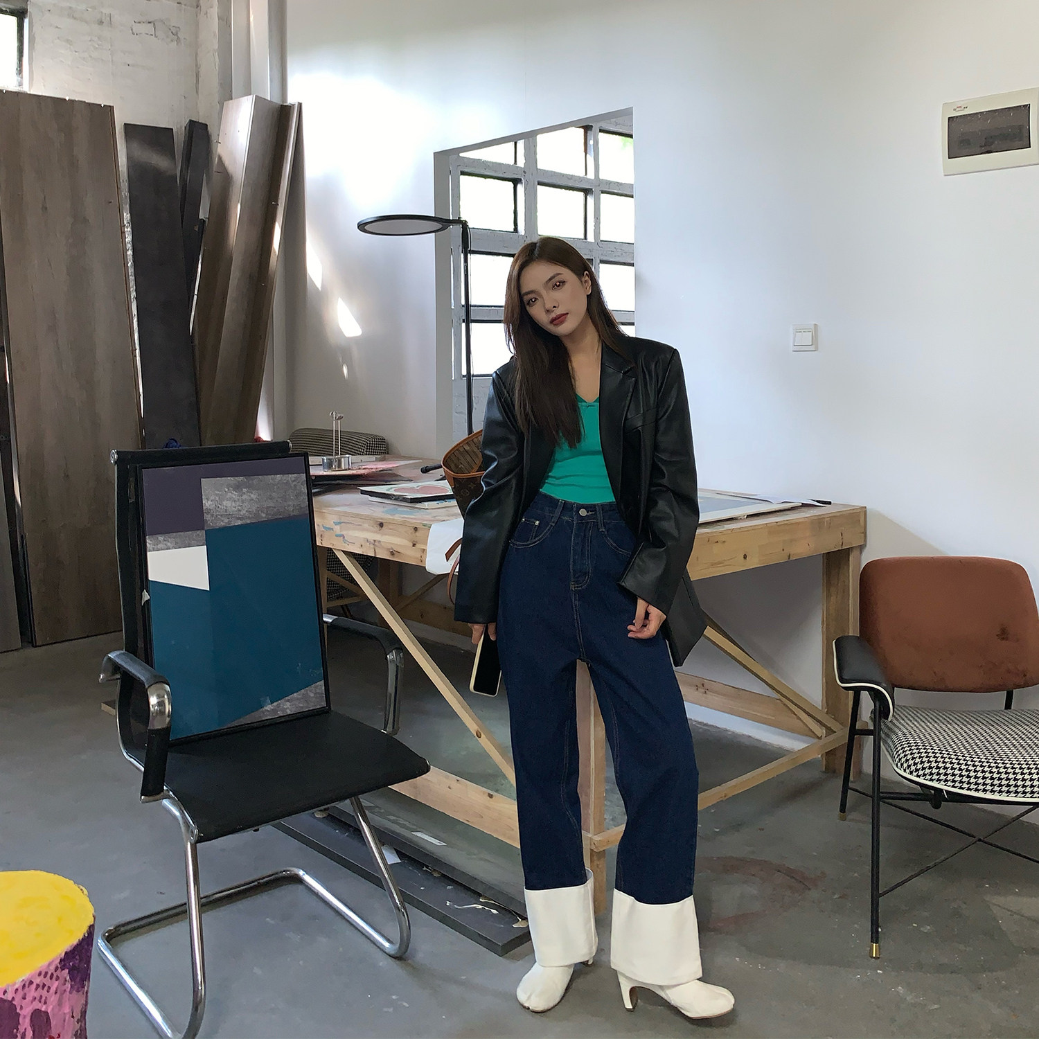 Tatsumi Fan Black Thick Leather Suit Jacket Women's Fall Winter 2022 New Premium Sense PU Leather Motorcycle Suit