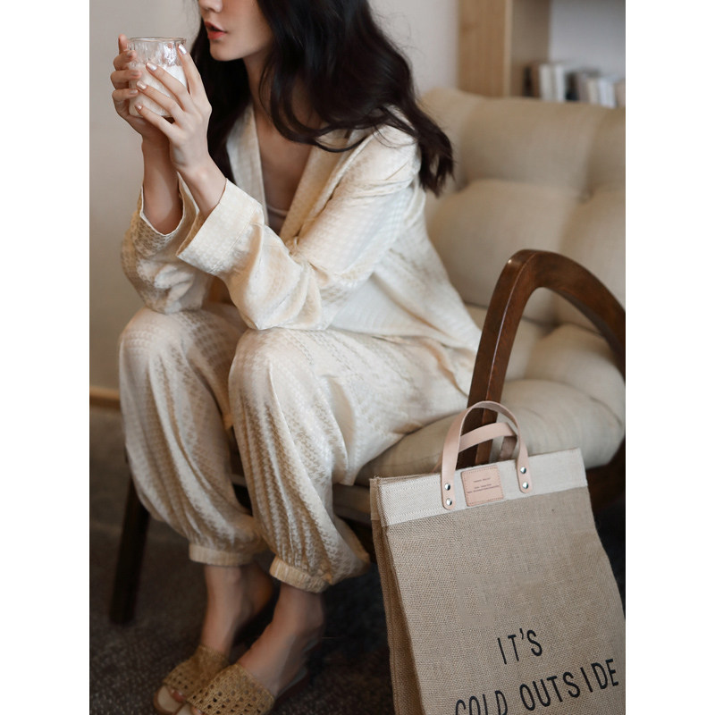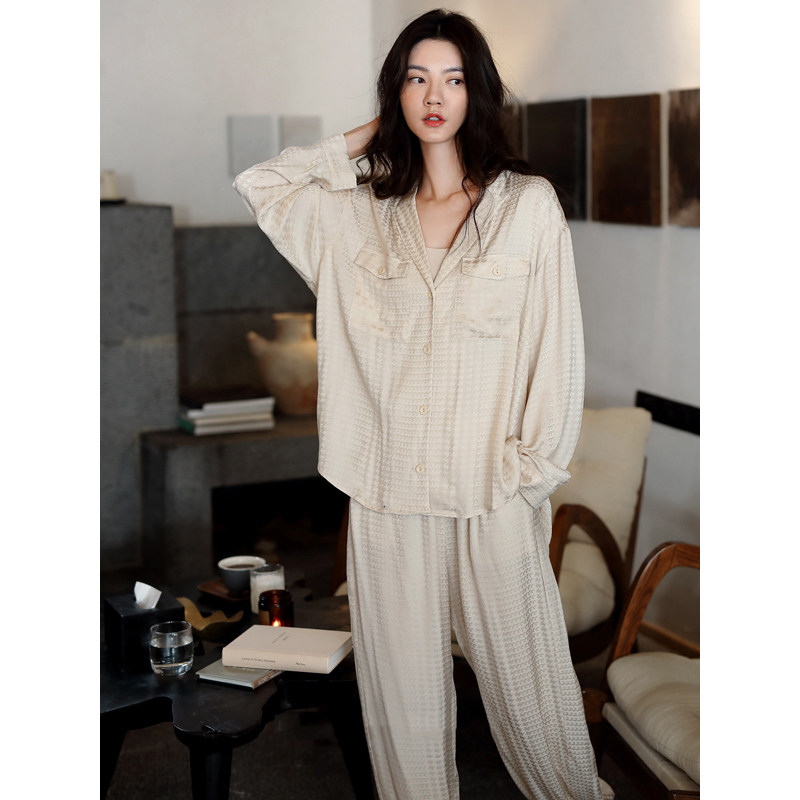 Sleepwear Lady Spring Fall Long Sleeve Sexy V Collar Silk Thin Autumn Winter Air Conditioning Lady's Home Conserved Ice Silk Suit