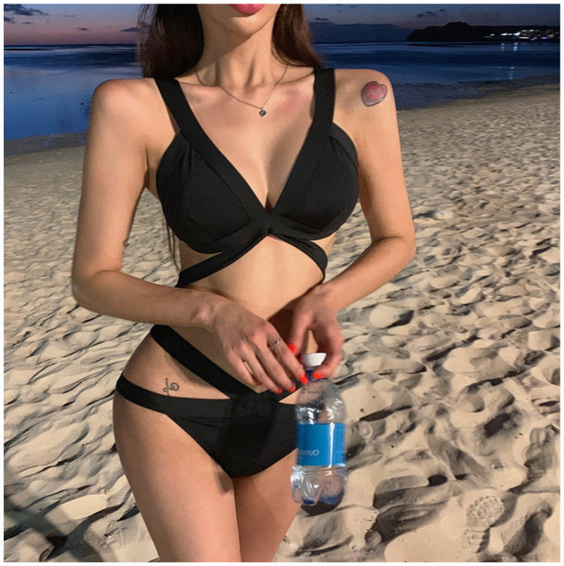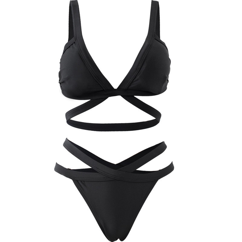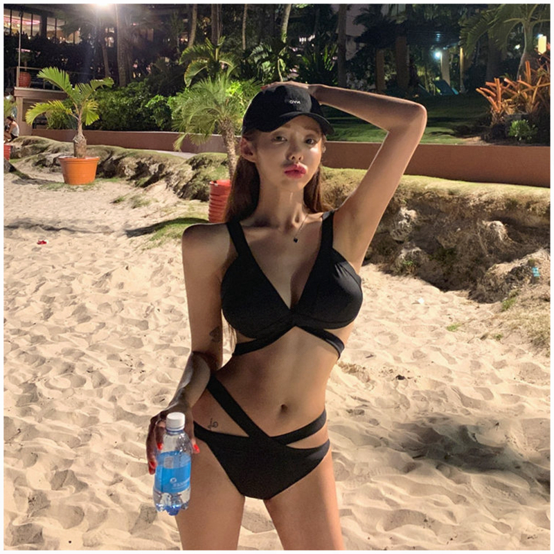 Swimsuit female net celebrity vacation European and American sexy three-point bikini two-piece two-piece black strap art test swimsuit