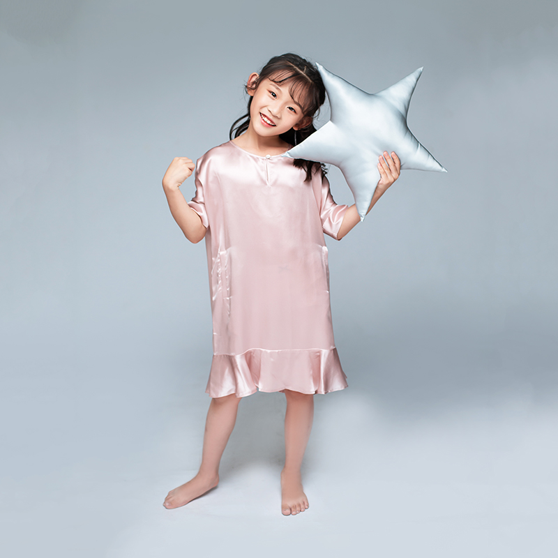 Cnsilk 100 % silk silk silk silk silk girl sleeping skirt on short sleeve pajamas household dress summer princess