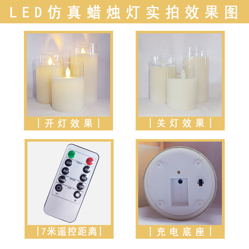 Charging (remote control) glass one-piece candle three-piece charging (remote control) glass one-piece candle six-piece charging (remote control) candle light 7 5*10cm charging (remote control) candle light 7 5*