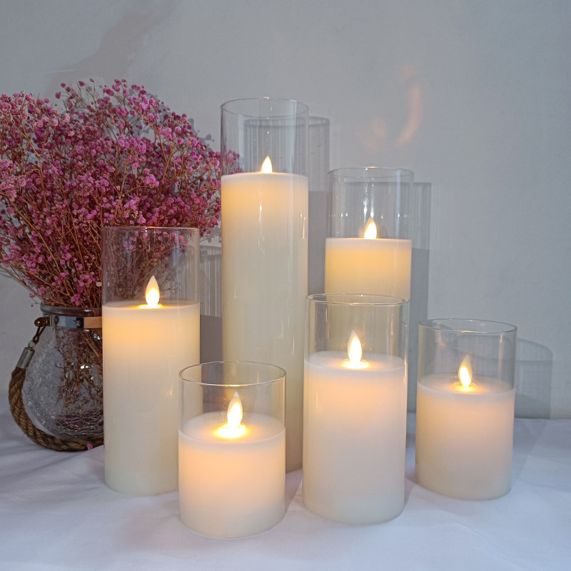 Charging one-size glass electronic candlelight flame romantic home LED atmosphere lamp wedding arrangement