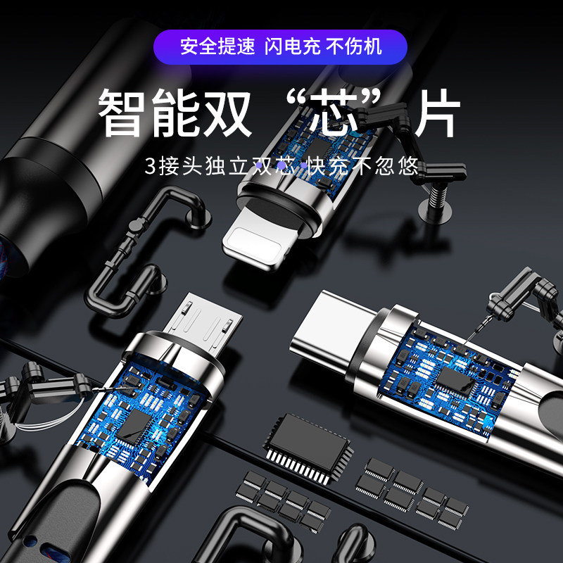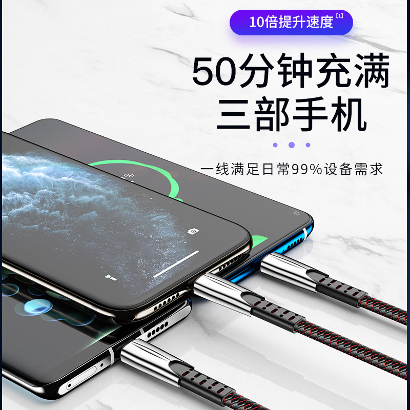 Charging cable one drag three fast charge suitable for Apple iphone Android typec three-in-one data cable universal Huawei vivo millet oppo car ipad mobile phone durable
