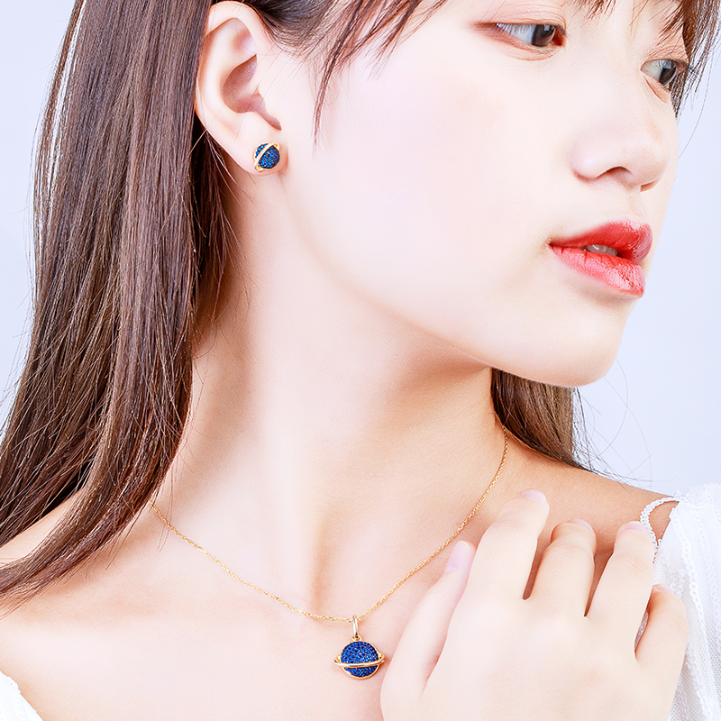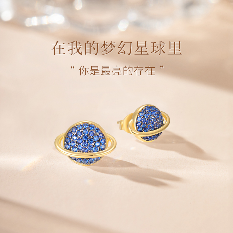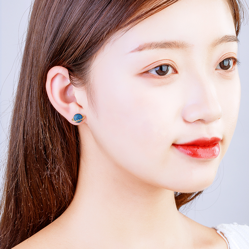 (Chinese gold) Treasy silver Happy Planet design earshot female fashion earthen Valentine's Day gift to girlfriend