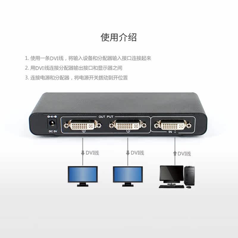 Engineering-grade DVI video distributor 1 in 2 out computer screen projector HD 1080P screen splitter