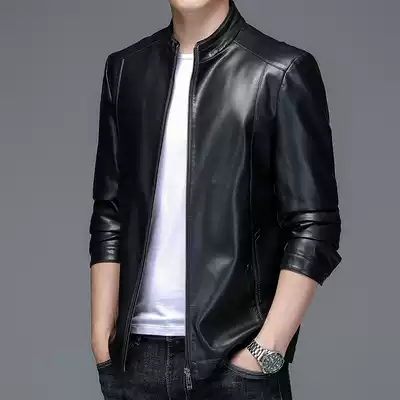 Men's leather clothing Haining spring and autumn thin casual sheep jacket short stand collar locomotive jacket men's tide