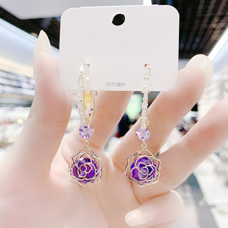 South Korea 2021 new trendy net red fashion exquisite zircon hollow rose earrings 925 sterling silver silver needle earrings