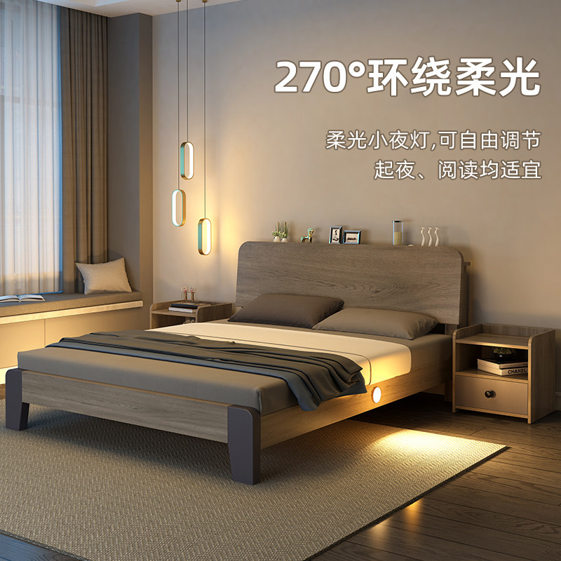 Bed Solid Wood Modern 1 5 m economy double bed Master Bed 1 8 single beds rented room - type bed