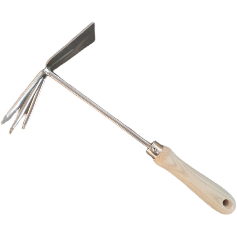 Stainless steel small hoe outdoor digging wild vegetable home planting loose soil gardening flower dual-purpose rake weeding tool