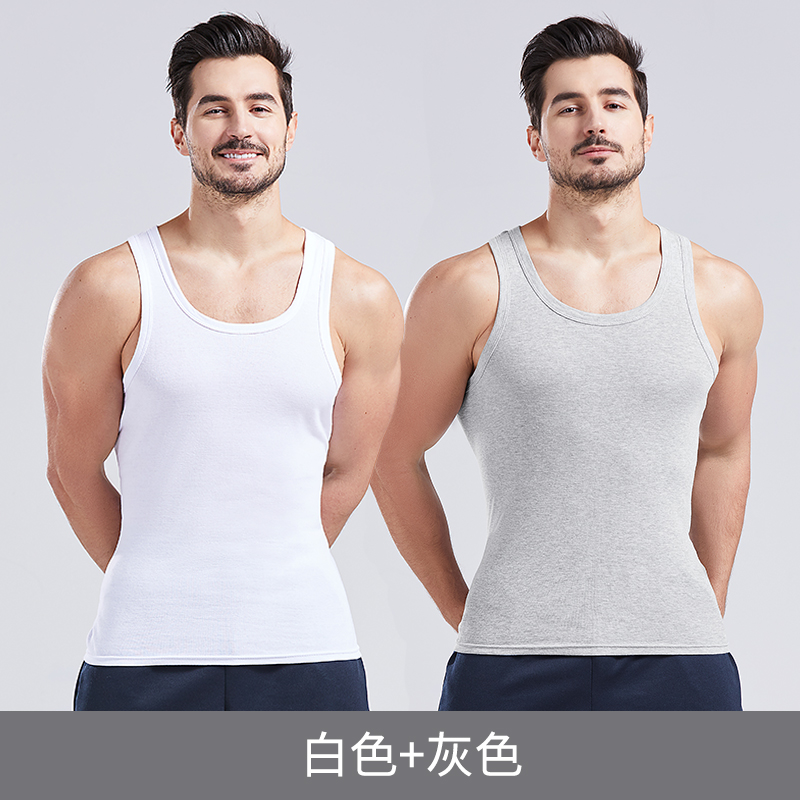 Men's vest two pieces - (white white) men's vest two pieces - (white black) men's vest two pieces - (white grey) 7747-Home clothes (beige)