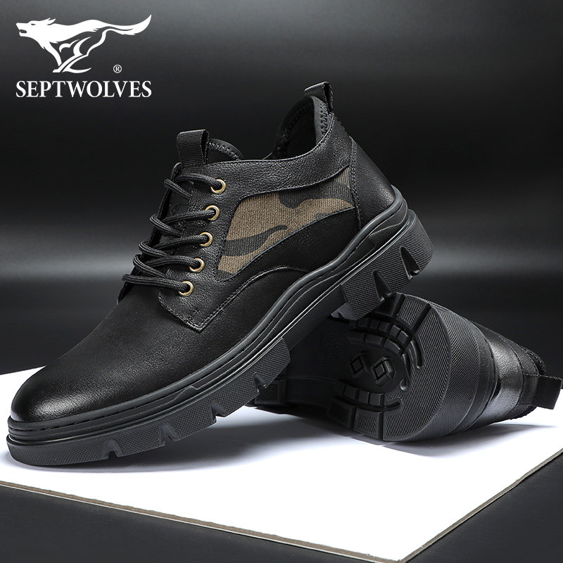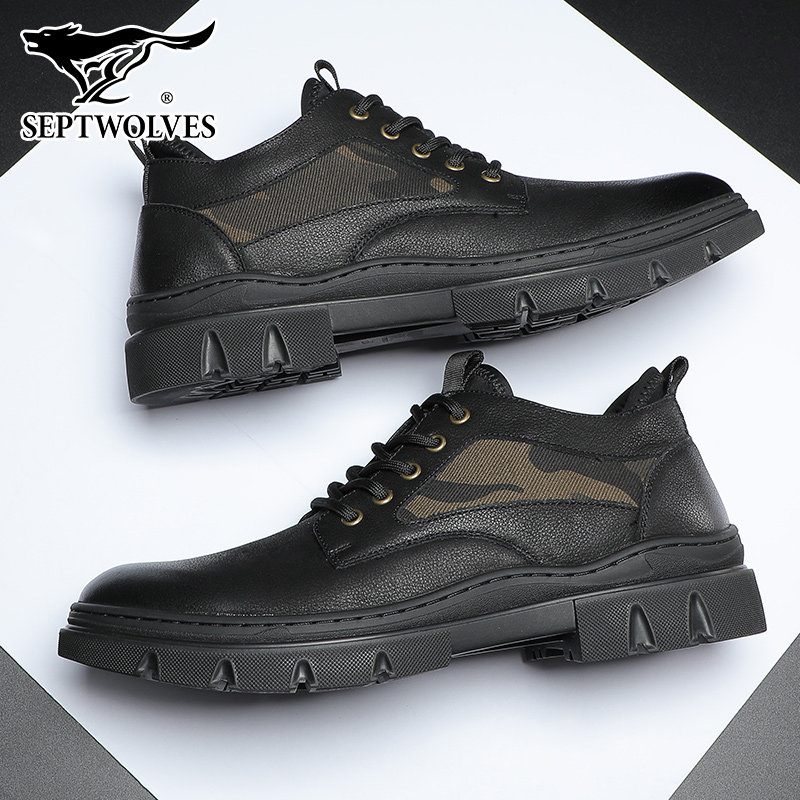 Septwolves men's shoes autumn retro Martin boots men's mid-tube 2022 new desert tooling boots leather handsome men's boots