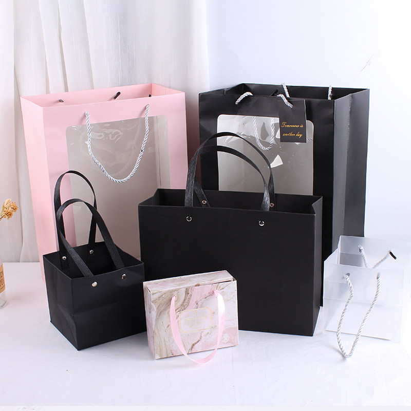 ZUO Packaging Box Handbag Black and White Basic Paper Bag Open Windows PVC Aromatic Candle Gift Bag High-end Gift Bag