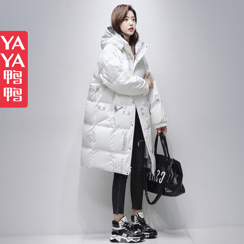 Duck and duck white duvet feather long - range 2022 new winter blast brightness loose hood warm suit outside