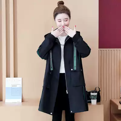 Pregnant women's autumn coat women's spring and autumn belly autumn windbreaker medium long version loose autumn coat cardigan large size