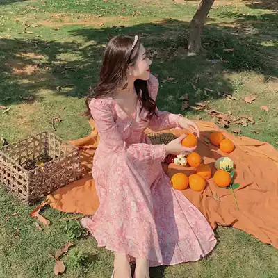 2021 tea break French dress A dress first love Platycodon can sweet salt skirt long dress female autumn