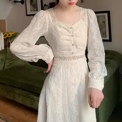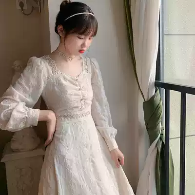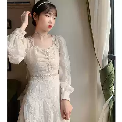 Embroidered lace dress French first love Platycodon skirt female 2021 Autumn New ins Super fairy skinny skirt