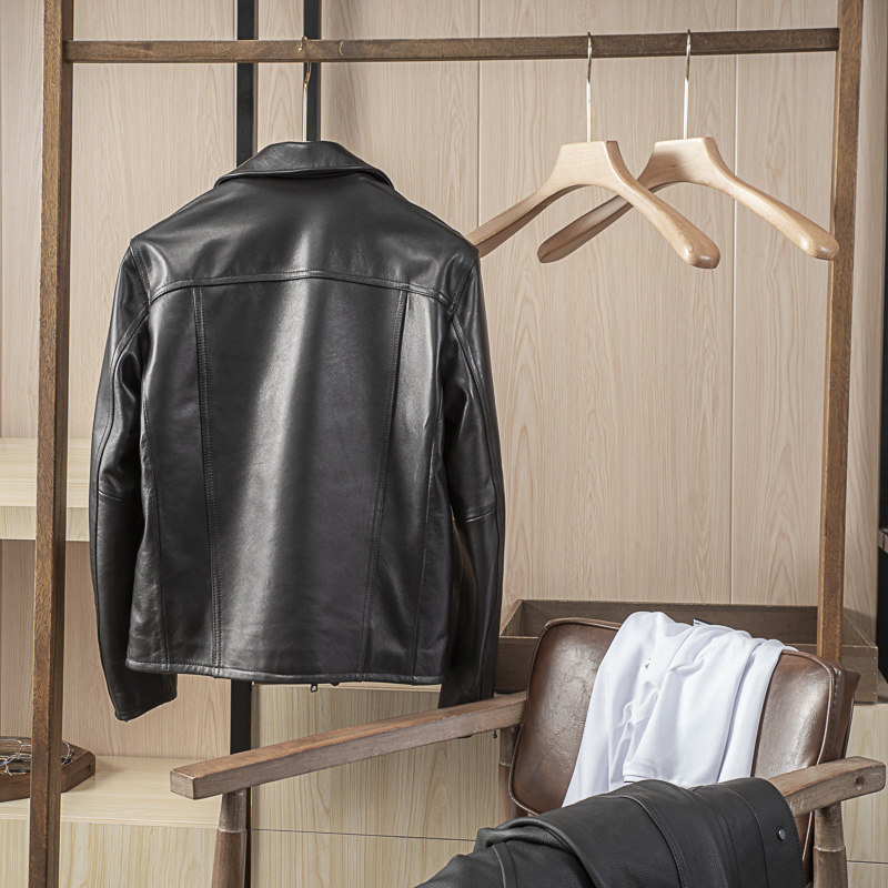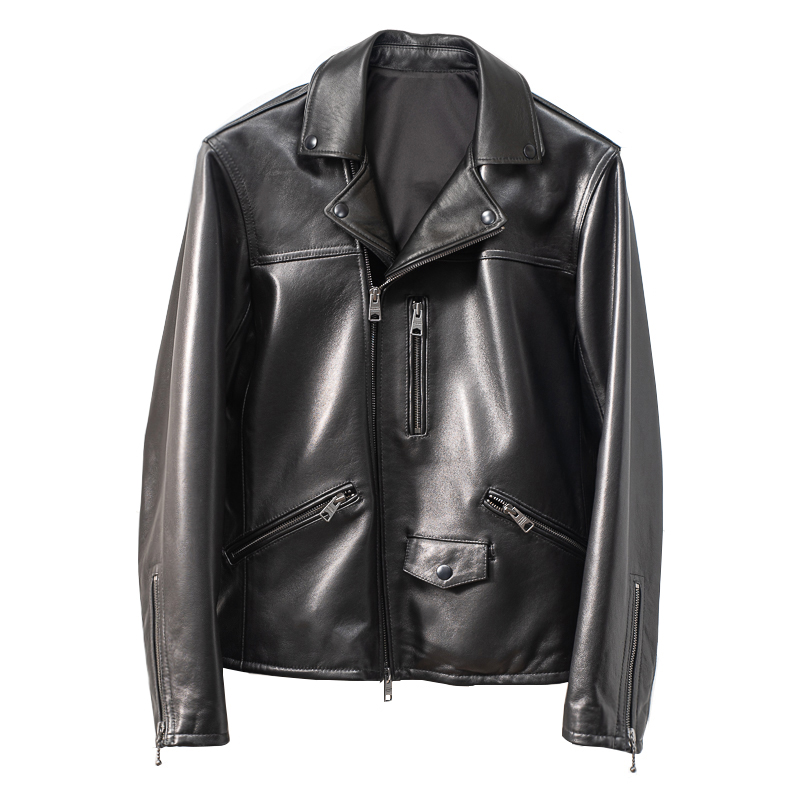 Walking British light luxury 3K Australia imported thick sheepskin high street oblique zipper motorcycle lapel jacket genuine leather jacket